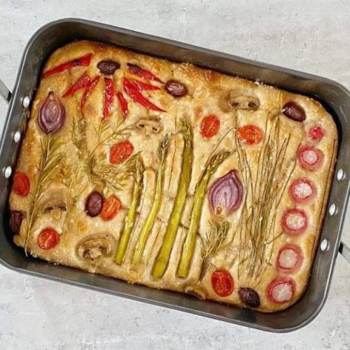- The classic focaccia is sprinkled with salt and rosemary, or you can go all out with an artistic flair and create beautiful patterns with herbs and vegetables!