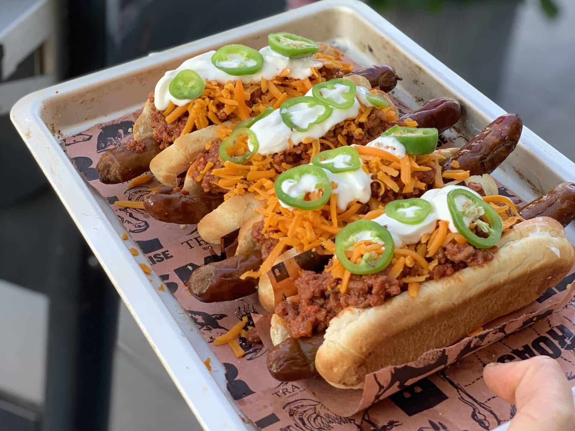 Grilled Bacon Chili Hotdogs