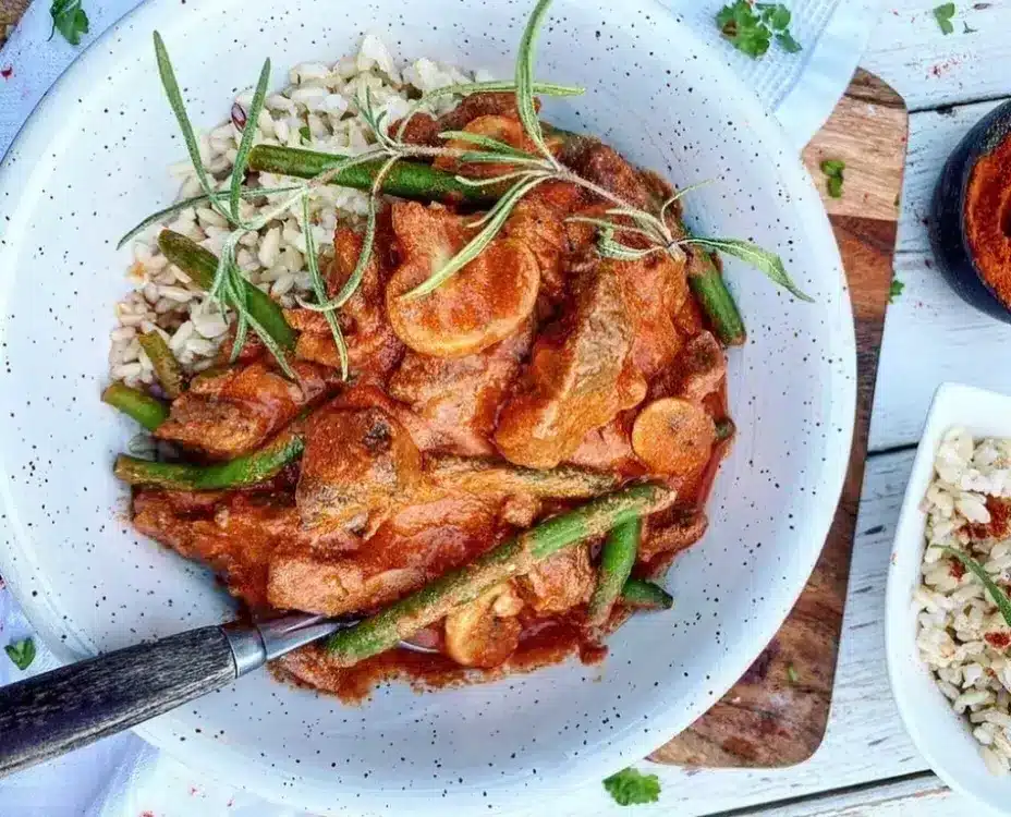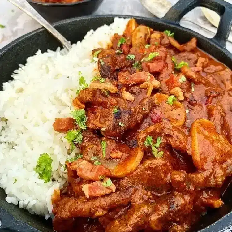 This creamy stew is packed with flavor from bacon, sun-dried tomatoes, and red peppers. It’s rich and comforting with a Mediterranean twist. Ideal for cool nights.