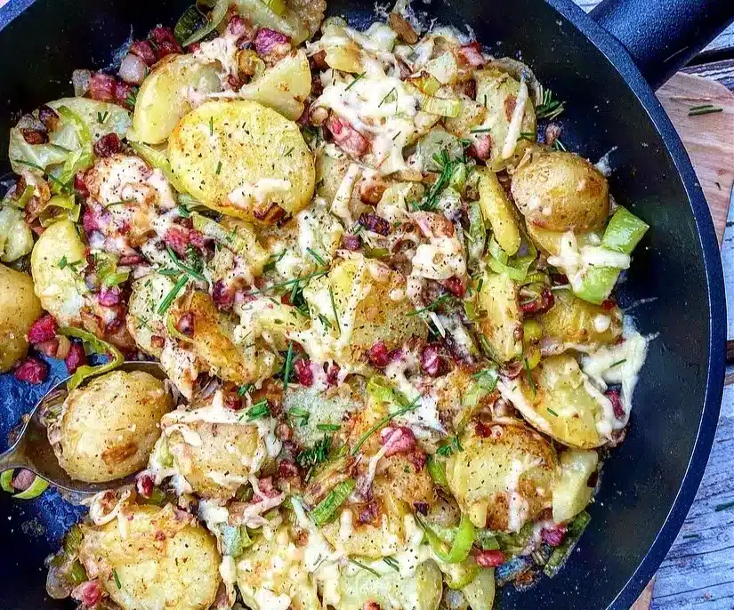 Potato Pan with Bacon, Leeks, and Cheese