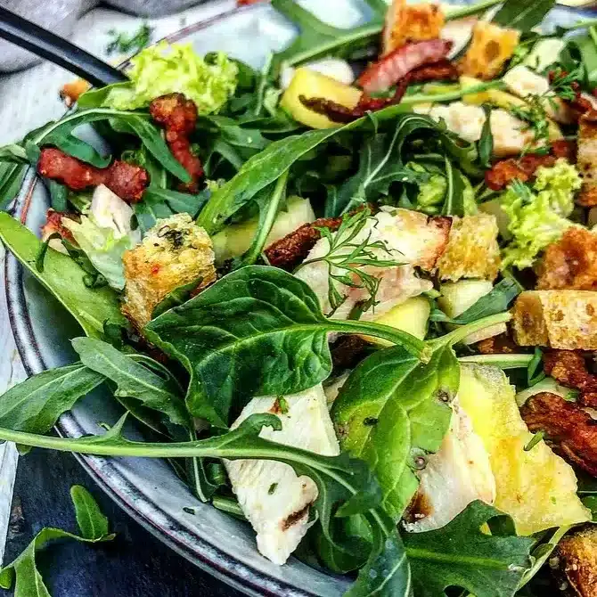 A tropical twist on chicken salad, with the sweetness of pineapple, smoky bacon, and a curry-spiced dressing. It’s perfect for summer lunches or picnic spreads.