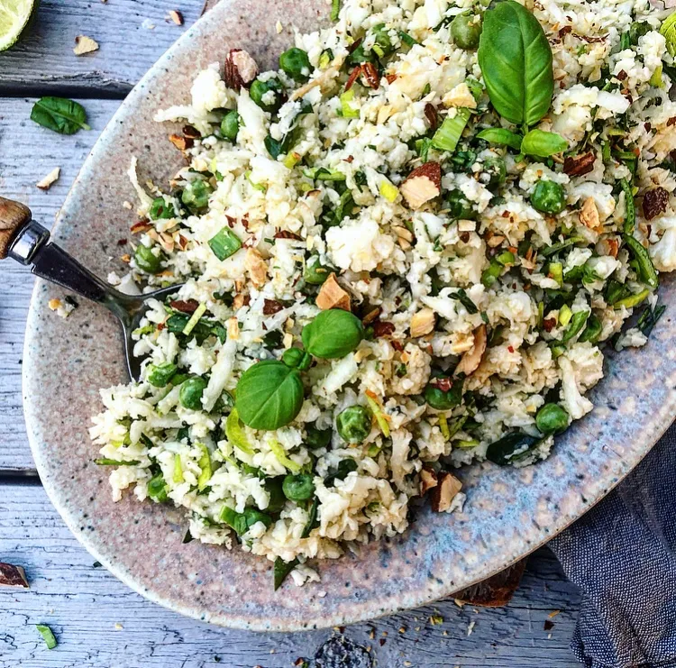 Cauliflower couscous with greens and salted almonds