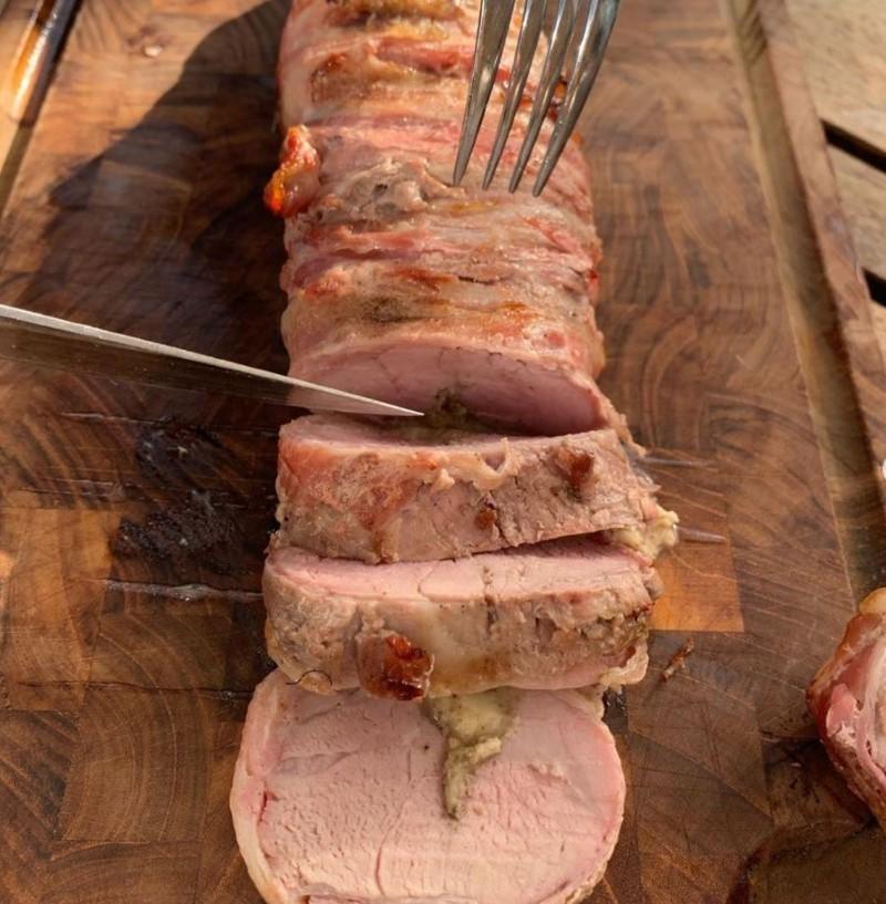 Filled pork tenderloin with basil and cheese