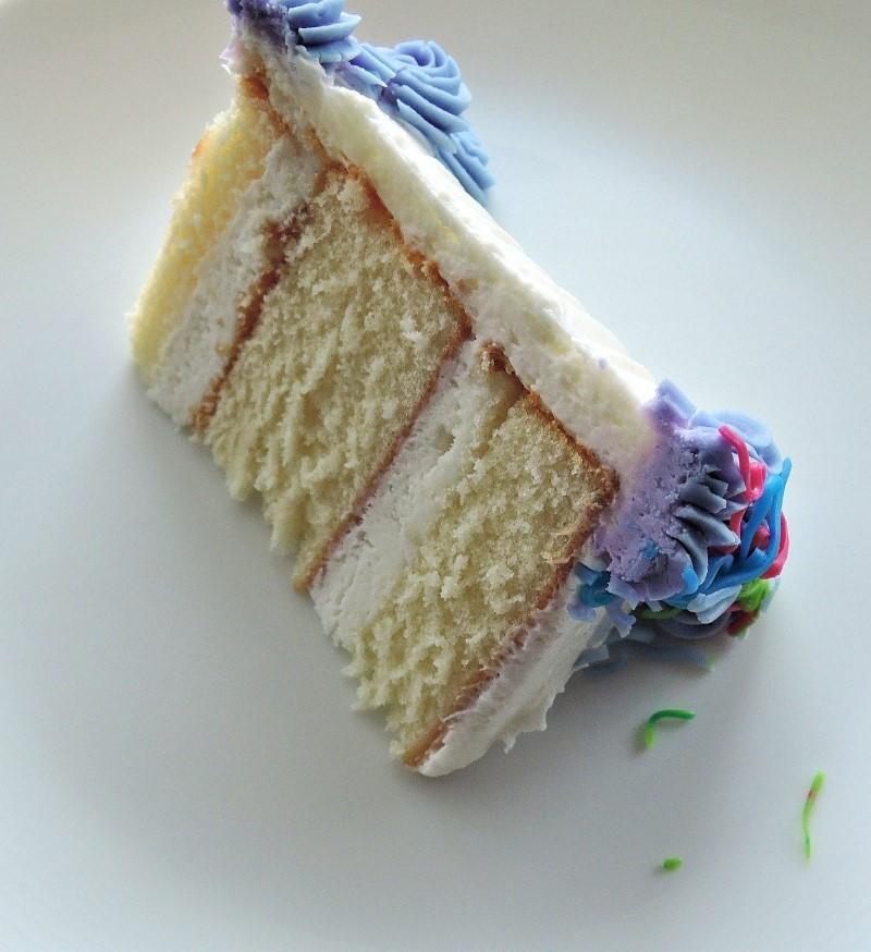 - Cut the cake into 3 thin cake layers with a knife. Insert 8-10 toothpicks in a straight line around the cake to easily mark where you want to make the first cut. This way the knife has something to guide it.