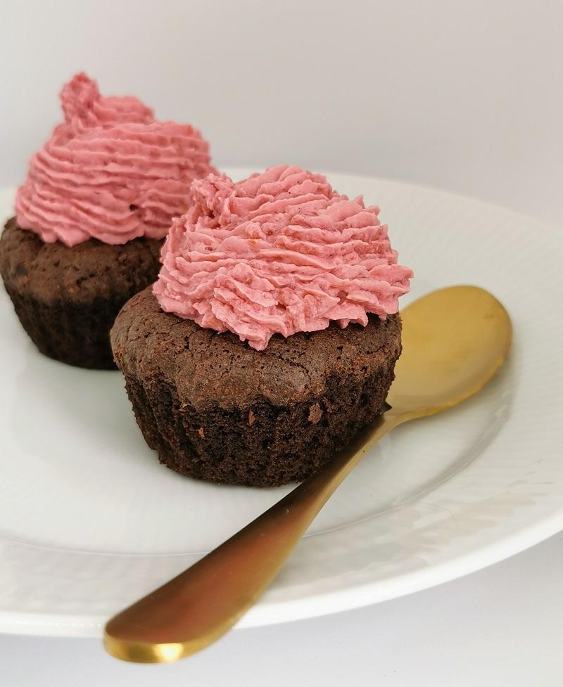 You can EASILY choose to serve the finished chocolate muffins just as they are, but you can also decorate them with a good homemade raspberry mousse (as I did) – or try spreading a creamy dulce de leche over them! At least, I think I’ll try that next time.