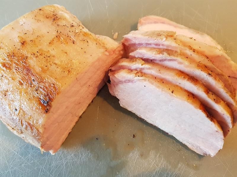 Iberico Lomo (loin) is a delicious cut from the fantastic Spanish black pig, Iberico. The meat resembles a good cut of beef more than Danish pork. Therefore, it should also be cooked closer to pink rather than well-done. The Lomo (loin) cut comes from the pig’s loin roast.