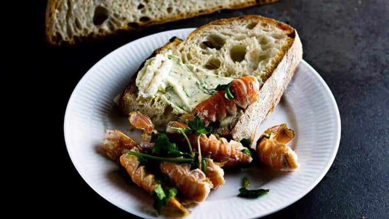 The recipe is delightfully simple and a sure hit every time. The langoustine tails are baked in the oven with garlic and parsley.