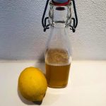 - Start by squeezing the juice from the lemon. Put the lemon juice in a pot along with water and raw sugar. Let it simmer until it thickens a bit - this takes about 5-7 minutes. Pour it through a funnel into a bottle and refrigerate..
