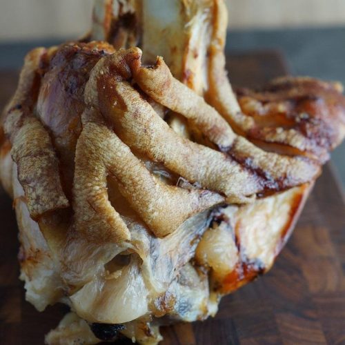 • After 6 hours, turn the oven up to 200 degrees Celsius (392 degrees Fahrenheit) for about 30 minutes until the crackling is crispy.