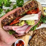 Rye Bread Sandwich with Beef Pastrami, Pesto, and Avocado