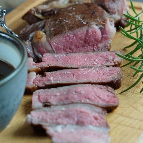 ghee and place the entire steak in the pan. Fry it for about 1 minute on one side, then flip and fry for another 30 seconds.